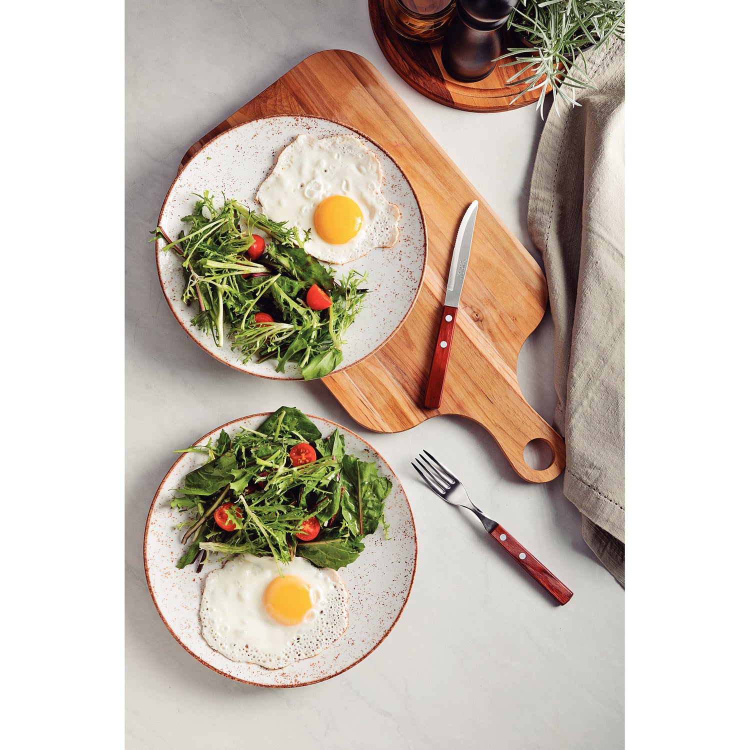 The Tramontina table knife with a 4-inch red Polywood treated wood blade and handle is perfect for everyday meals. Its highly resistant blade is made of stainless steel and has a powerful and durable cutting edge. The Polywood treated wood handle provides comfortable handling and adds charm and quality to your table thanks to its rustic style. Get yours and complete your table setting!