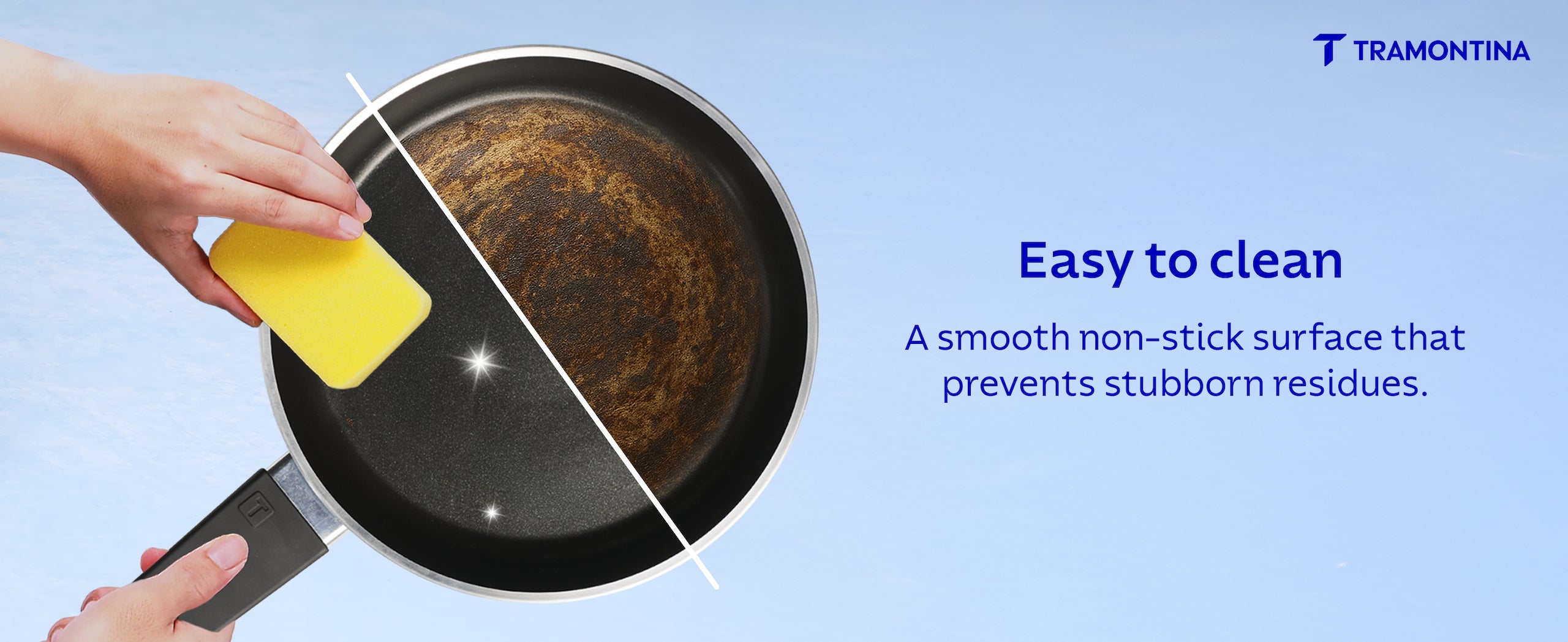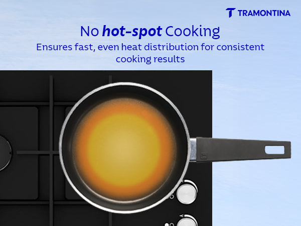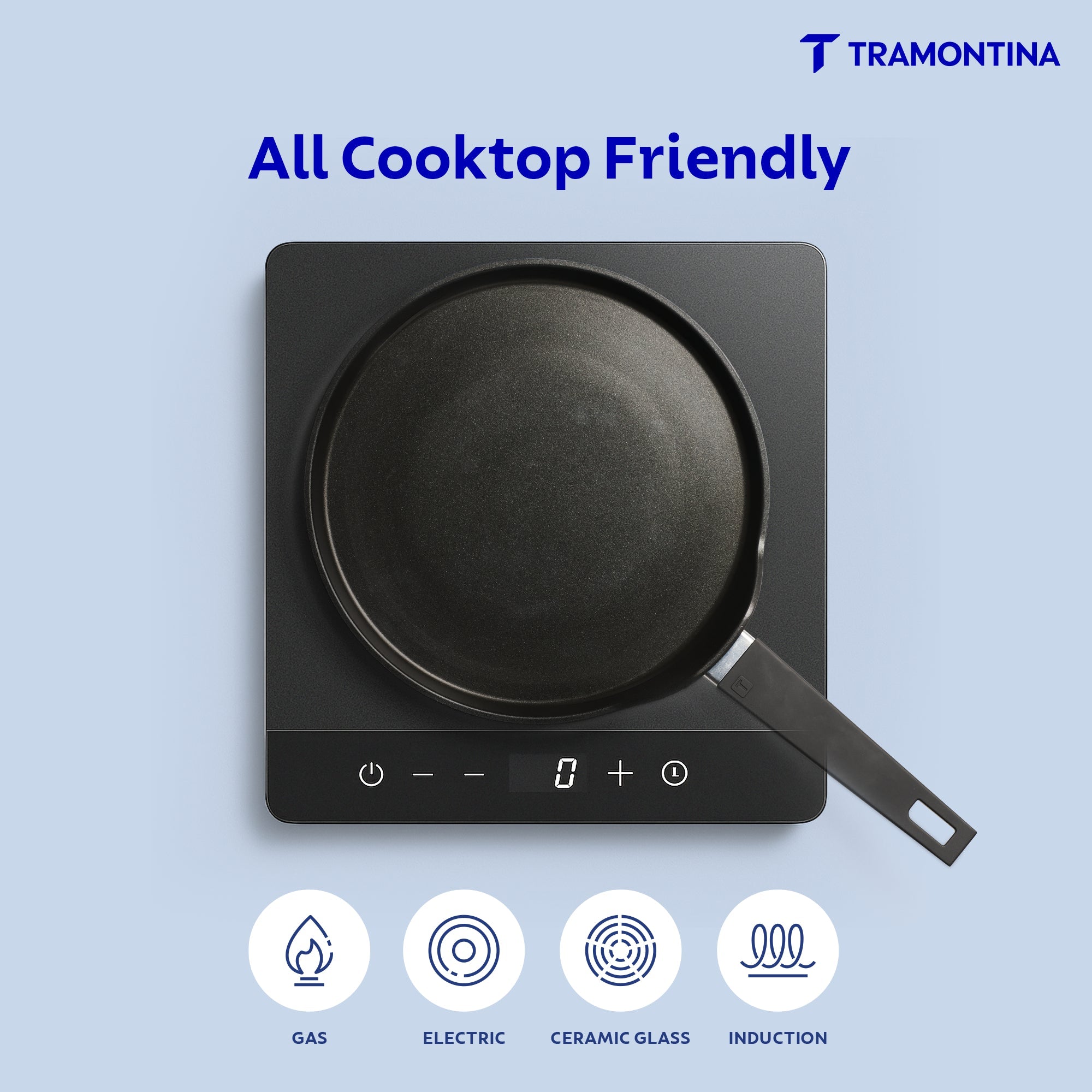 Tramontina Aura is a premium ceramic reinforced cookware range engineered for healthier, low-oil cooking. Built with cold-forged aluminium, the range delivers quick and even heat distribution for consistent results. The ceramic non-stick surface ensures smooth food release and easy cleaning, making it perfect for everyday Indian cooking styles like frying, sautéing, simmering, tadka and dosa preparation.