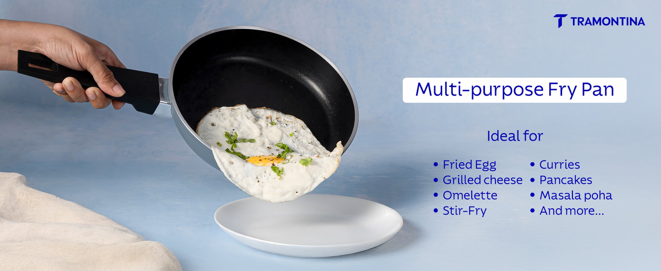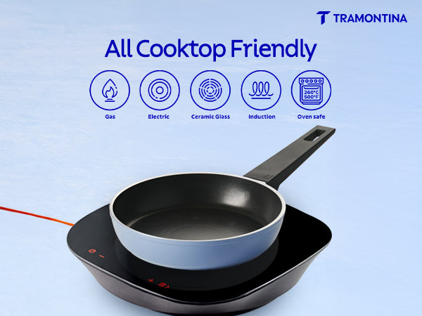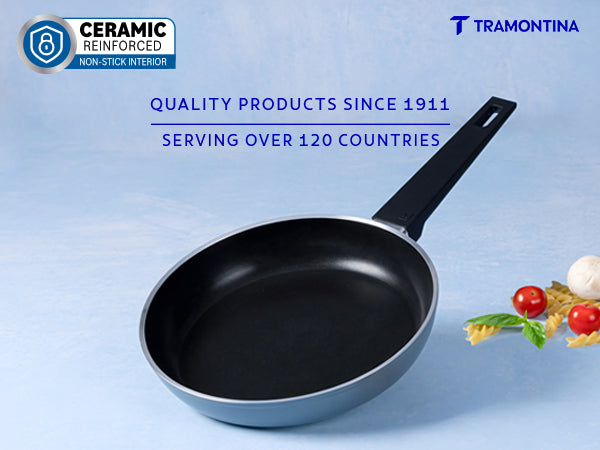 Tramontina Aura is a premium ceramic reinforced cookware range engineered for healthier, low-oil cooking. Built with cold-forged aluminium, the range delivers quick and even heat distribution for consistent results. The ceramic non-stick surface ensures smooth food release and easy cleaning, making it perfect for everyday Indian cooking styles like frying, sautéing, simmering, tadka and dosa preparation.