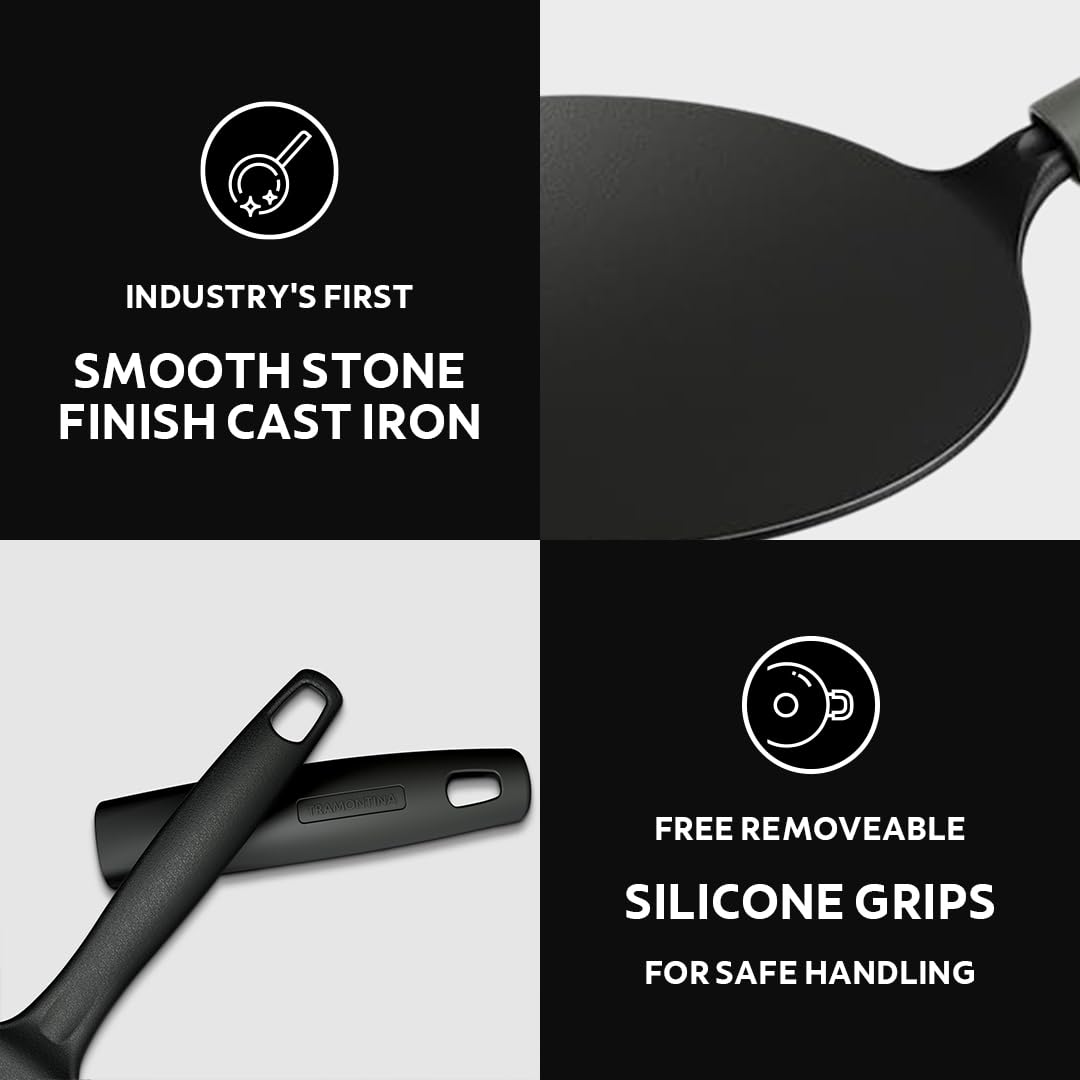 Upgrade your cooking with Tramontina Titanex—where tradition meets quality. Get yours today and enjoy the art of making delicious, homemade rotis! Elevate your cooking experience with the Tramontina Titanex 30 cm Pre-Seasoned Cast Iron Roti Tawa. Designed for both culinary enthusiasts and everyday cooks, this versatile tawa is perfect for making delicious, perfectly cooked rotis, parathas, and more. Key Features: Non-Toxic Construction: Made from high-quality, non-toxic cast iron, ensuring a safe and healthy cooking surface for you and your family. Easy Hold Non-Slip Heat-Resistant Grip: The innovative non-slip grip provides a secure and comfortable hold, allowing you to maneuver the tawa easily, even at high temperatures. Cook with confidence and comfort! Superior Stone Finish: The unique stone finish enhances the natural non-stick properties of the tawa, making it easier to cook and clean while imparting an authentic flavor to your dishes. Excellent Heat Retention & Even Heating: Enjoy superior heat retention that ensures even cooking and browning. This means perfectly cooked rotis every time, with a delightful golden crust and soft interior. Durable & Easy to Clean: Designed for longevity, this cast iron tawa is built to withstand the test of time. Its easy-to-clean surface requires minimal maintenance—simply wipe it down after use, and it’s ready for your next culinary adventure. Product Description for Amazon Tramontina Titanex 30 cm Pre-Seasoned Cast Iron Roti Tawa Elevate your cooking experience with the Tramontina Titanex 30 cm Pre-Seasoned Cast Iron Roti Tawa. Designed for both culinary enthusiasts and everyday cooks, this versatile tawa is perfect for making delicious, perfectly cooked rotis, parathas, and more. Key Features: Non-Toxic Construction: Made from high-quality, non-toxic cast iron, ensuring a safe and healthy cooking surface for you and your family. Easy Hold Non-Slip Heat-Resistant Grip: The innovative non-slip grip provides a secure and comfortable hold, allowing you to maneuver the tawa easily, even at high temperatures. Cook with confidence and comfort! Superior Stone Finish: The unique stone finish enhances the natural non-stick properties of the tawa, making it easier to cook and clean while imparting an authentic flavor to your dishes. Excellent Heat Retention & Even Heating: Enjoy superior heat retention that ensures even cooking and browning. This means perfectly cooked rotis every time, with a delightful golden crust and soft interior. Durable & Easy to Clean: Designed for longevity, this cast iron tawa is built to withstand the test of time. Its easy-to-clean surface requires minimal maintenance—simply wipe it down after use, and it’s ready for your next culinary adventure. Why Choose Tramontina Titanex? The Tramontina Titanex 30 cm Pre-Seasoned Cast Iron Roti Tawa is more than just a cooking tool; it’s an essential part of your kitchen that enhances your cooking efficiency and flavor. Perfect for traditional Indian flatbreads and a wide range of other dishes, this tawa is a versatile, durable, and practical addition to your cookware collection. Why Choose Tramontina? With a legacy of 113 years of quality craftsmanship, Tramontina brings you cookware that not only enhances your cooking experience but also adds a touch of elegance to your kitchen. Our cast iron grill pan is durable, versatile, and designed to help you create delicious meals for family and friends.