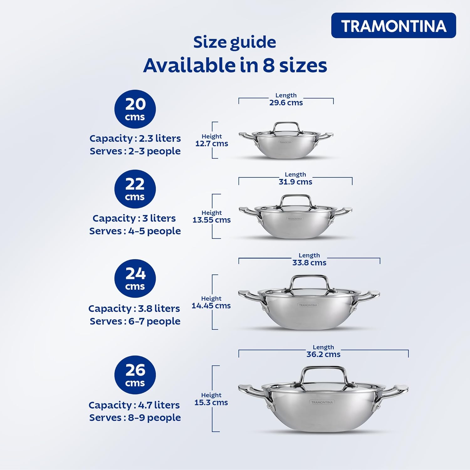 The circular bottom enables easy tossing and stirring of your veggies, a process that aids in monitoring the texture of the food. The lid on the kadai retains and enhances the flavour. Our non-stick ceramic kadai ensures equal distribution of heat and works as a secure base for frying and deep-frying. Embrace the art of cooking in the Tramontina tri-ply ceramic kadai.