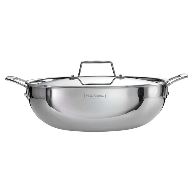 The circular bottom enables easy tossing and stirring of your veggies, a process that aids in monitoring the texture of the food. The lid on the kadai retains and enhances the flavour. Our stainless steel kadai ensures equal distribution of heat and works as a secure base for frying. Embrace the art of cooking in the Tramontina stainless steel tri-ply kadai.