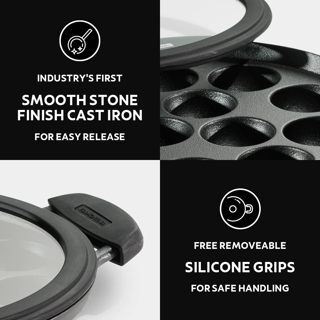 Titanex 26 cm Pre-Seasoned Cast Iron Paniyaram/Appe Pan – 12 Pits