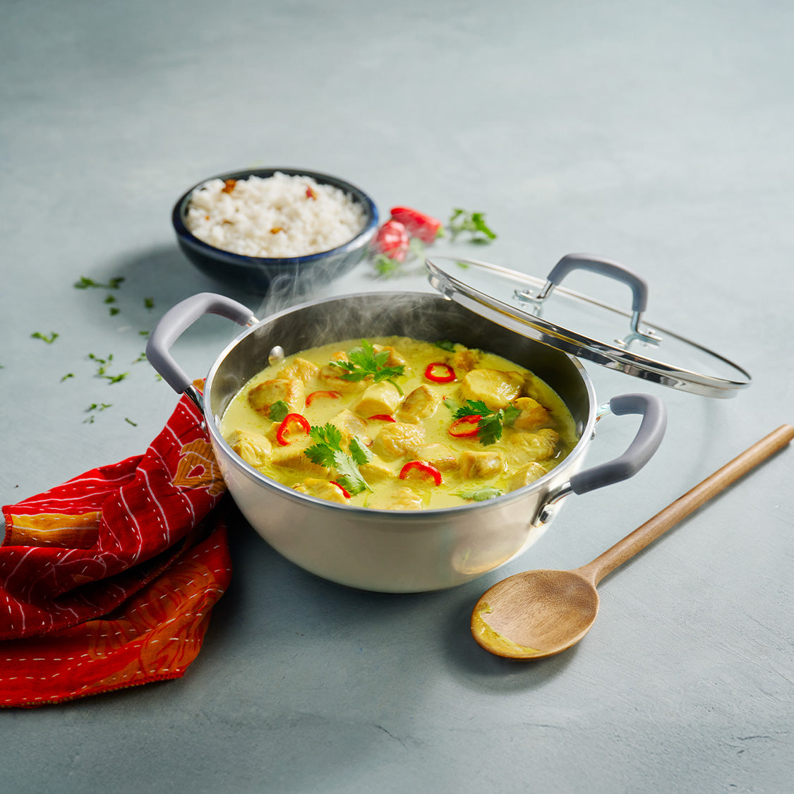 Cold Forged Construction | Ceramic Reinforced Interior | Healthy & Safe | Silicone Handle for Easy Grip | Tempered Glass Lid