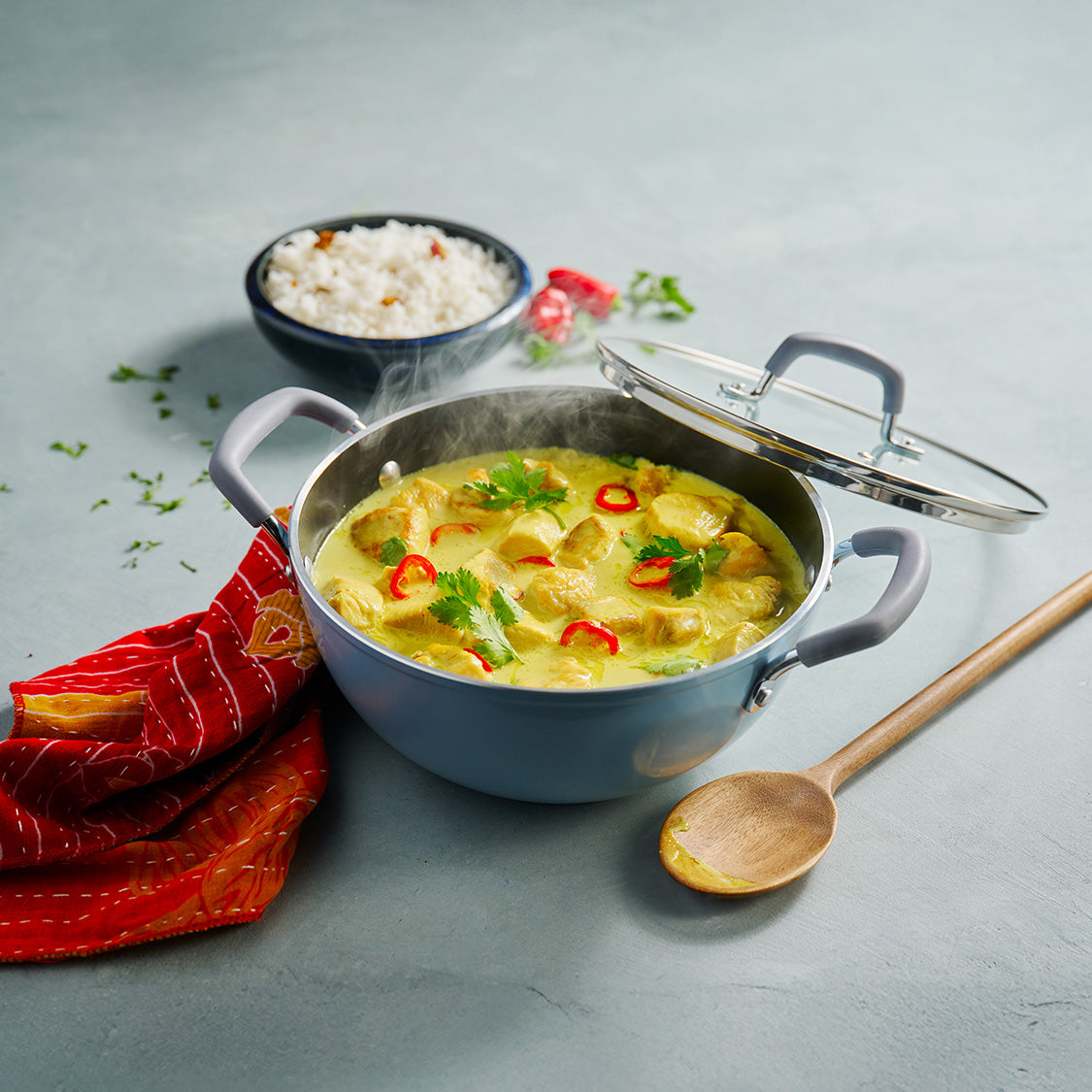 Cold Forged Construction | Ceramic Reinforced Interior | Healthy & Safe | Silicone Handle for Easy Grip | Tempered Glass Lid