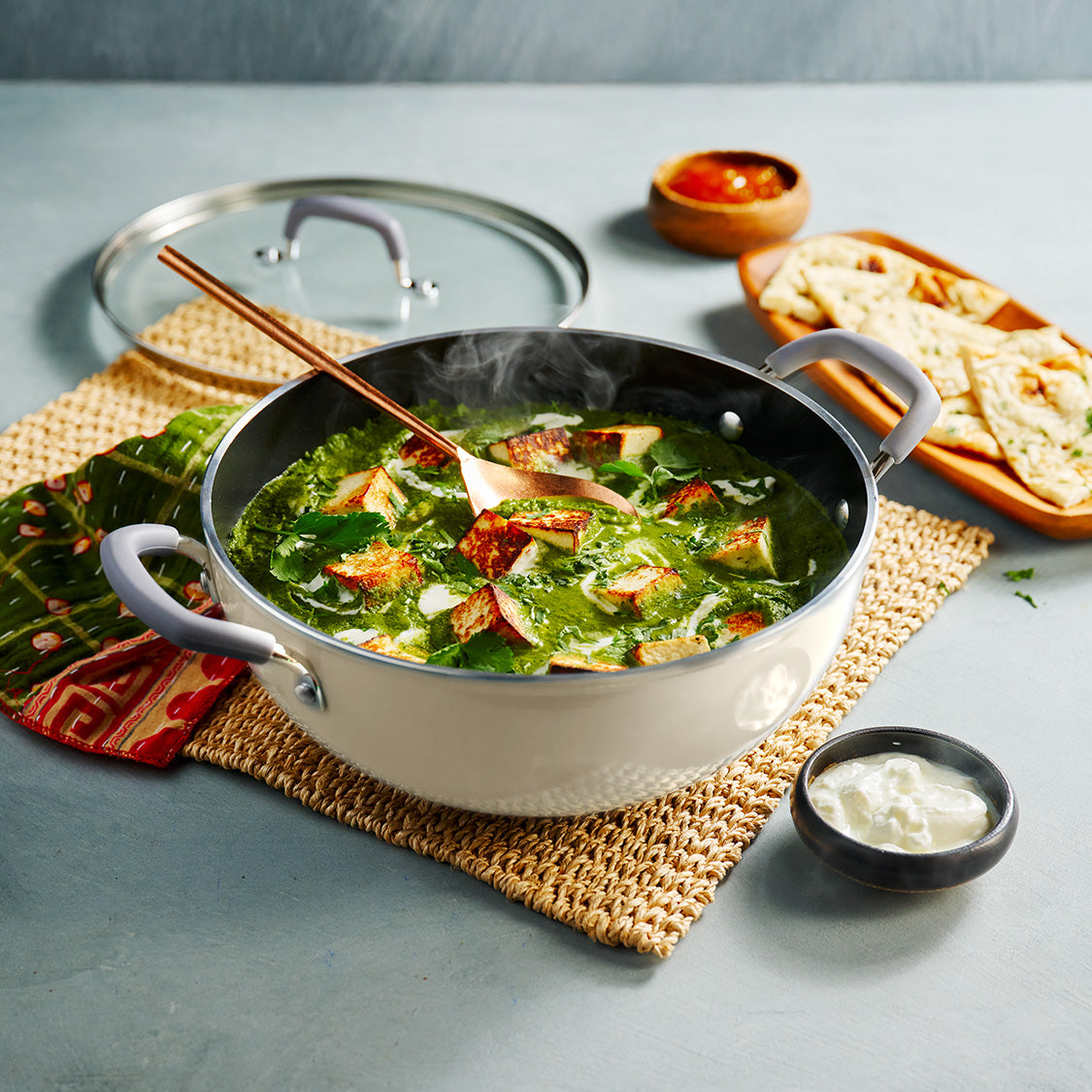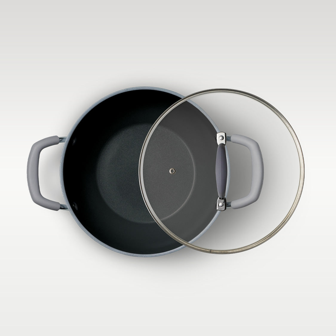 Cold Forged Construction | Ceramic Reinforced Interior | Healthy & Safe | Silicone Handle for Easy Grip | Tempered Glass Lid
