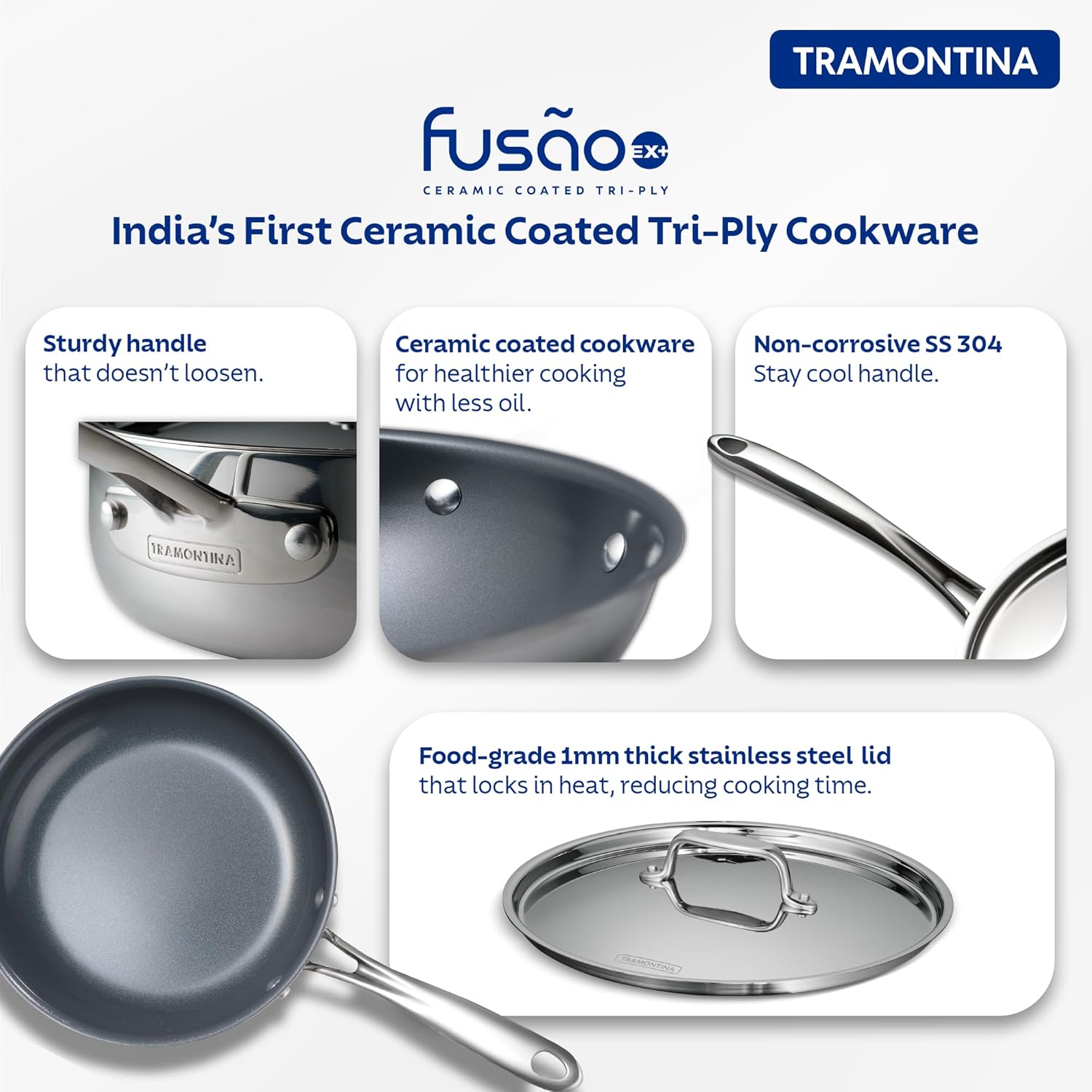 Fusao EX+ 20cm Ceramic Stainless Steel Tri-Ply Fry Pan with SS Lid