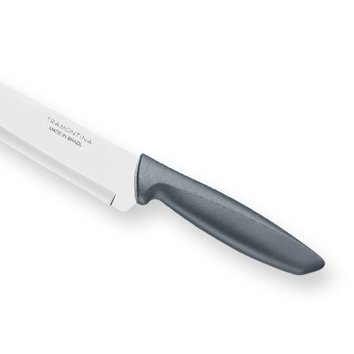 The Tramontina Chef Knife is specially crafted for the culinary maestros. With a sleek 6",8",10" stainless steel blade, our polypropylene handle fits ultra comfortably in the curve of your palm. Cutting meat, dicing vegetables, slicing herbs, chopping raisins and nuts, the Tramontina Chef's knife is sharp and highly durable. The flat side of the knife can even be used to crush garlic, the chef's knife serves as a multi-purpose kitchen tool. From chopping vegetables for curries to the thinly sliced onions for the aromatic biryanis to preparing gourmet salads, the chef's knife is here to make your inner chef shine bright.