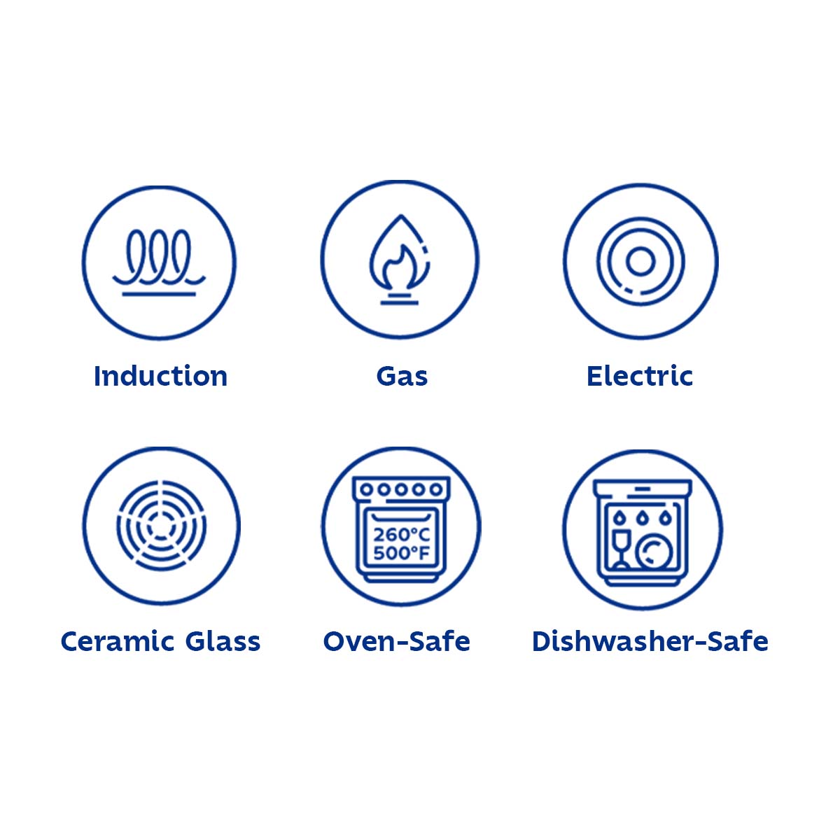 - Oven-friendly: The triply stainless steel cookware can be used in the oven to gratin or cook dishes at a maximum temperature of 260°C (500° F).
