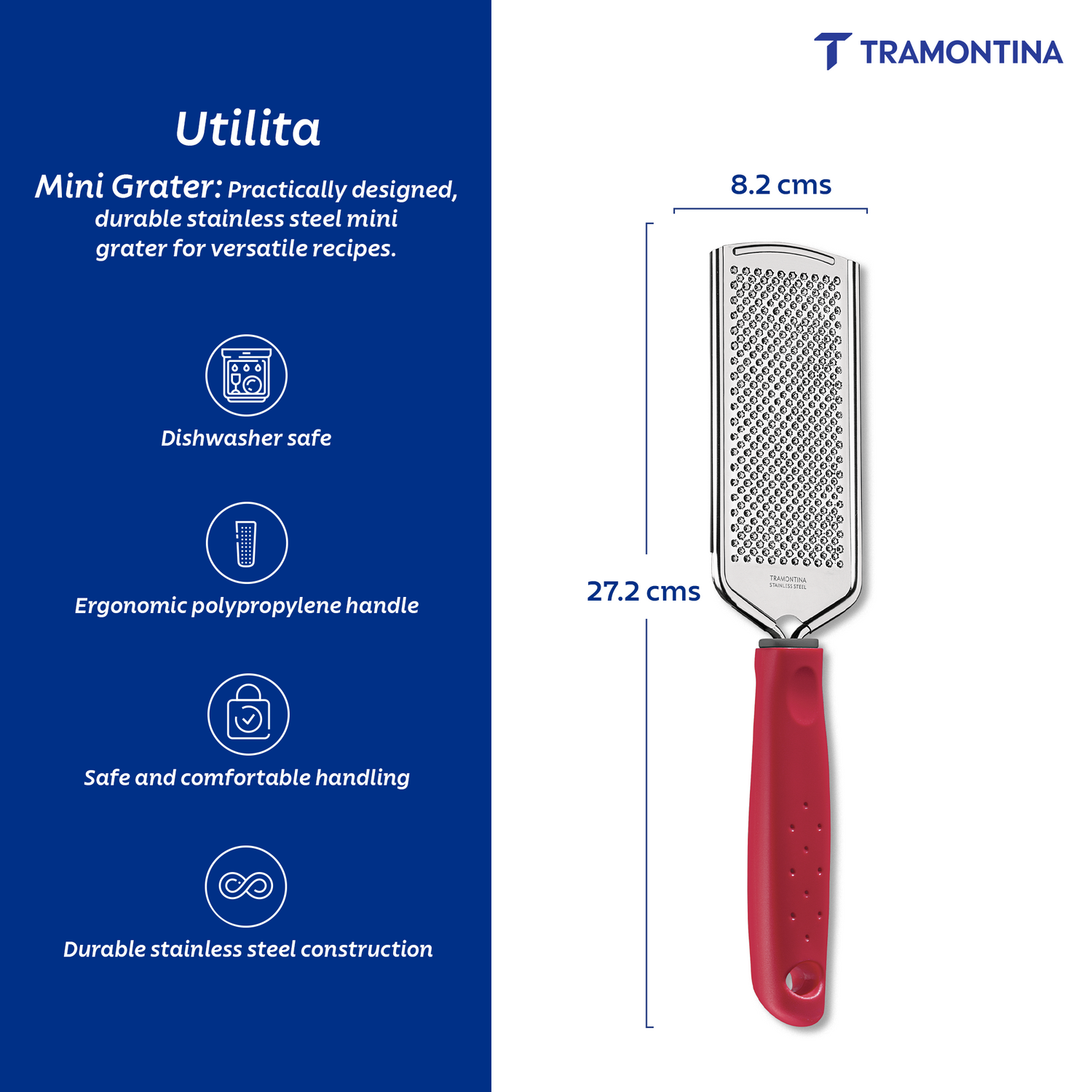 And how great it is to add that extra touch to a recipe, isn't it? And you'll be able to take your dishes to the next level with Tramontina's Utilità stainless steel mini grater with red polypropylene handle, from the Utilità line. Precision and safety in handling are guaranteed by the stainless steel blade and also by the elegant red polypropylene handle. Make your family and friends sigh with delicious and unforgettable recipes.