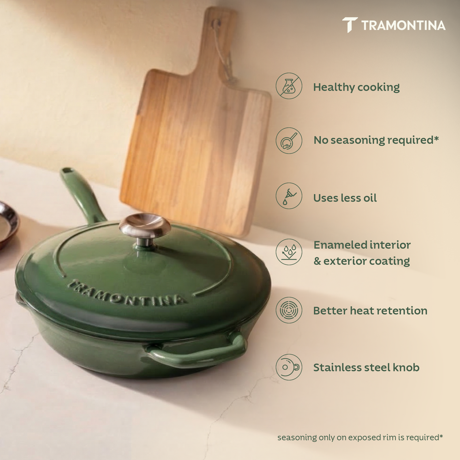 Bestow Enameled Cast Iron Covered Skillet - 25cm (Cactus Green)
