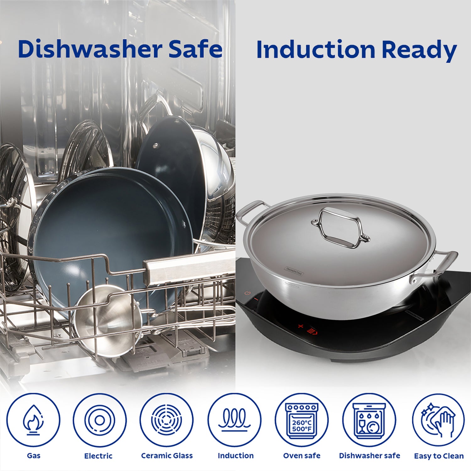 Fusao EX+ 24cm Ceramic Stainless Steel Tri-Ply Extra Deep Kadai with SS Lid - 3.8L