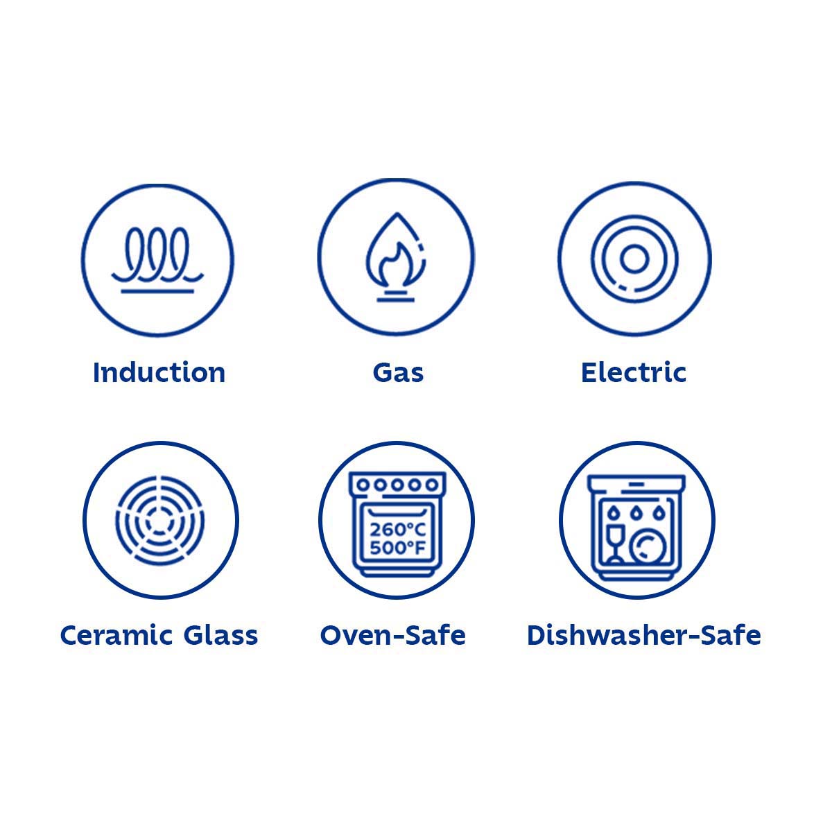 - Oven-friendly: The triply stainless steel cookware can be used in the oven to gratin or cook dishes at a maximum temperature of 260C (500 F).