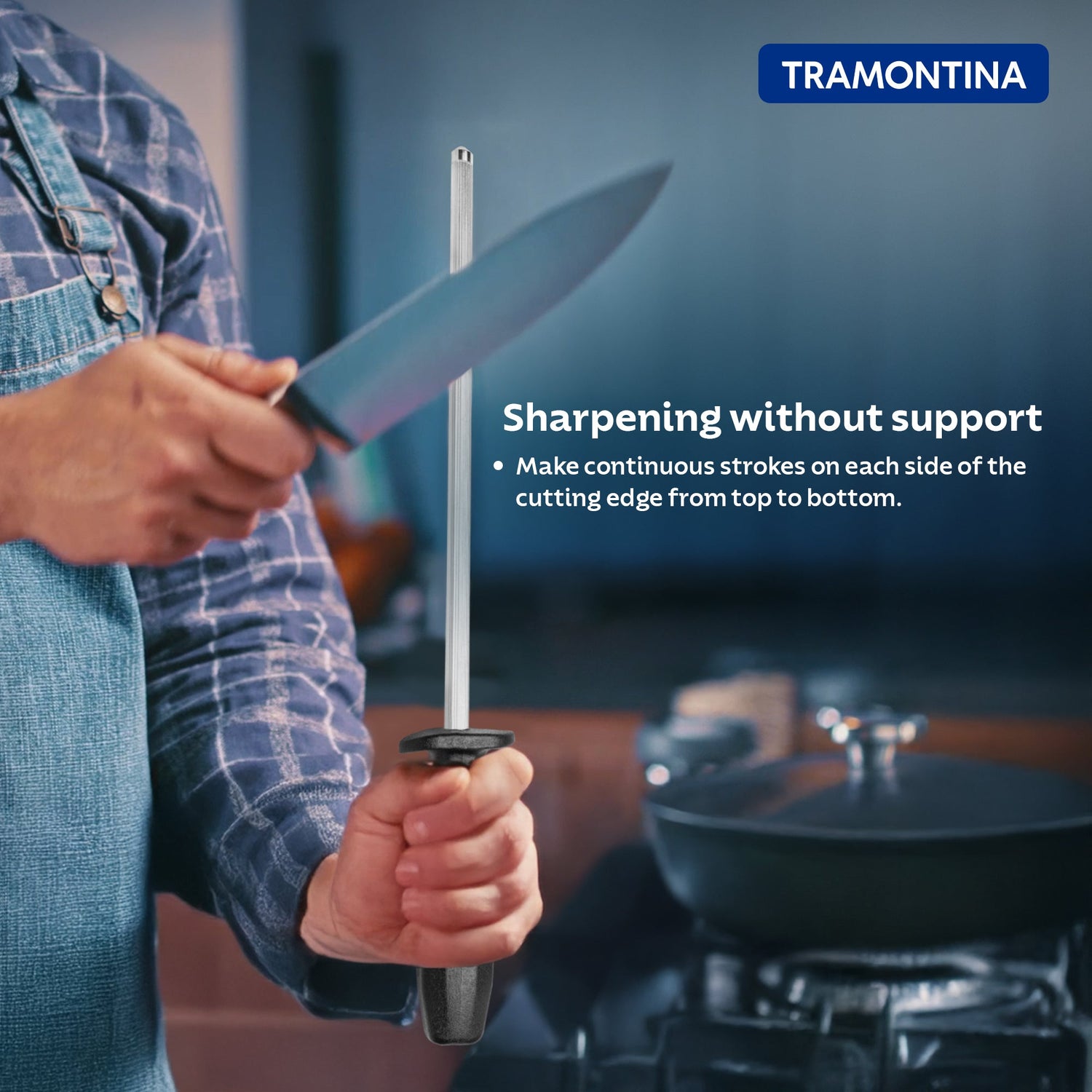 Maintain razor-sharp knives with ease using the Tramontina Plenus 8-Inch Grooved Sharpening Steel. Designed for both home cooks and culinary enthusiasts, this sharpening rod features a durable carbon steel shaft coated with hard chrome, ensuring long-lasting effectiveness and resistance to corrosion. The grooved surface helps realign knife edges quickly, keeping your blades in optimal condition. Its ergonomic black polypropylene handle provides a secure, comfortable grip for safer handling. And when you're done, simply place it in the dishwasher for quick and easy cleanup. Built for daily use and crafted with quality in mind, this sharpening steel is part of Tramontinas trusted Plenus line, offering both performance and practicality. Includes a 90-day warranty against manufacturing defects.