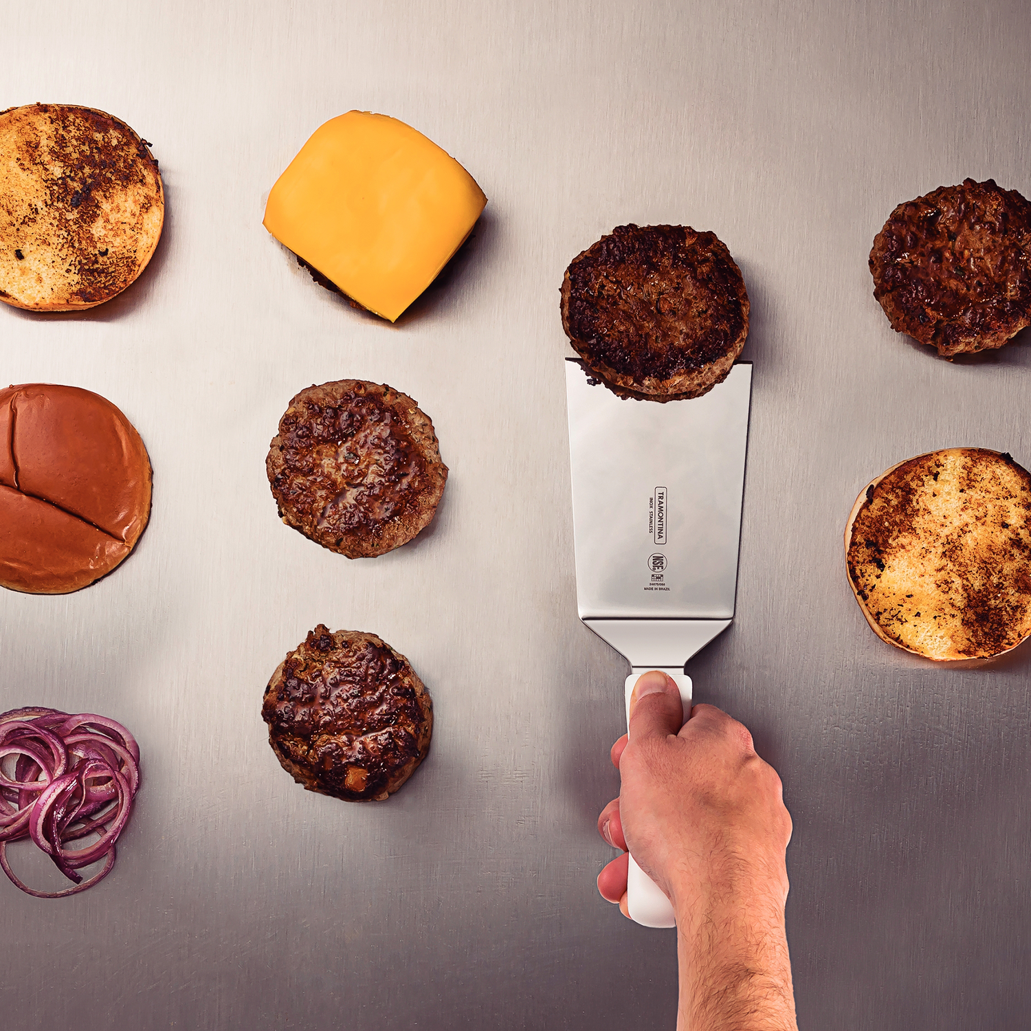 Make griddle cooking easier and more efficient with the Tramontina Professional Frying Spatula, featuring a 6" x 3.5" heat-treated stainless steel blade. Designed with an average hardness of 46 HRc, the blade delivers durability, strength, and reliable performance for lifting, turning, and handling food on hot surfaces. The anatomical, textured polypropylene handle offers a comfortable and secure grip, perfectly shaped to fit your hand during long cooking sessions. For superior hygiene, the handle is injected directly onto the tang to eliminate gaps where food particles can accumulate. It also includes antimicrobial protection that helps reduce the growth of fungi and bacteria. Whether you're frying, flipping, or serving, this professional-grade spatula brings dependable Tramontina quality to every meal.