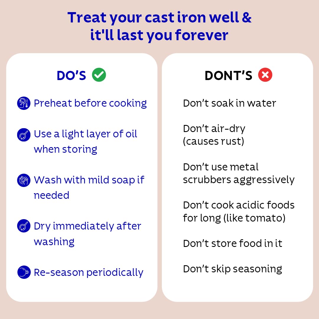 The Tramontina Titanex 30 cm Pre-Seasoned Cast Iron Deep Kadai is built for large-scale cooking with a 6.8L capacity, making it the perfect tool for family feasts, batch cooking, and hosting gatherings. This versatile kadai offers excellent heat retention and durability, making it ideal for a wide range of cooking techniques. Key Features: Pre-Seasoned Cast Iron: The kadai comes pre-seasoned for a natural non-stick surface that enhances with each use, ensuring easy food release and simple cleaning. 6.8L Capacity: With a large 6.8L capacity, this kadai is perfect for preparing large quantities of food, ideal for big family meals, parties, and festive cooking. Induction Ready: Compatible with all stovetops, including induction, gas, electric, and ceramic, providing versatility for any cooking environment. Toughened Glass Lid with Steam Release: The tempered glass lid allows you to monitor cooking while retaining heat and moisture. The built-in steam release valve ensures controlled cooking and prevents overpressure. Snap-On Cool Touch Grips: Designed for safety and comfort, the detachable cool-touch grips allow for secure handling, even during high-heat cooking. Excellent Heat Retention & Even Heating: The cast iron construction ensures even heat distribution and exceptional heat retention, making it ideal for slow cooking, deep frying, and simmering dishes to perfection. Why Choose Tramontina Titanex Cast Iron Deep Kadai? Non-Toxic & Safe: Made from non-toxic, high-quality materials, this kadai is free from harmful chemicals such as PFOA and PTFE, ensuring safe and eco-friendly cooking. Built to Last: The heavy-duty cast iron construction ensures long-lasting durability, making this kadai a reliable kitchen essential for years to come. Simple Maintenance: Easy to clean and maintain, the kadai just needs a quick hand wash after use. Occasionally re-season to maintain its non-stick properties and ensure long-term performance. Whether you're cooking a large batch of biryani, deep-frying snacks, or slow-cooking a stew, the Tramontina Titanex 30 cm Cast Iron Deep Kadai offers excellent performance, versatility, and durability. Its large capacity and superior heat retention make it the perfect choice for home cooks who love preparing delicious meals for a crowd.