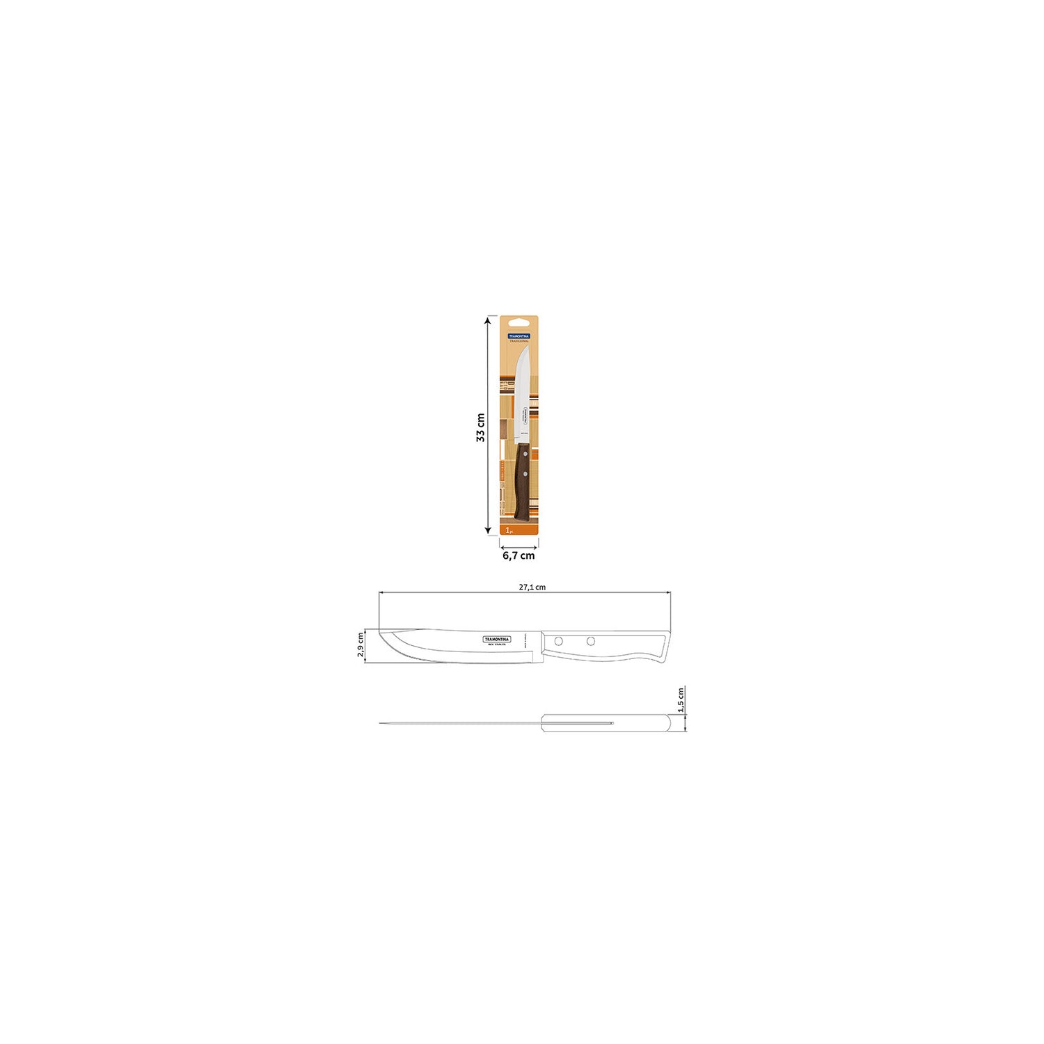 For those who demand quality and rustic style in their kitchen, consider the Tramontina Traditional kitchen knife with a 6-inch stainless steel blade and natural wood handle. Narrow and rigid, its stainless steel blade ensures an excellent edge and cutting power. The natural wood handle with aluminum rivets provides the charm and versatility your kitchen deserves, as it can be used with a wide variety of foods!