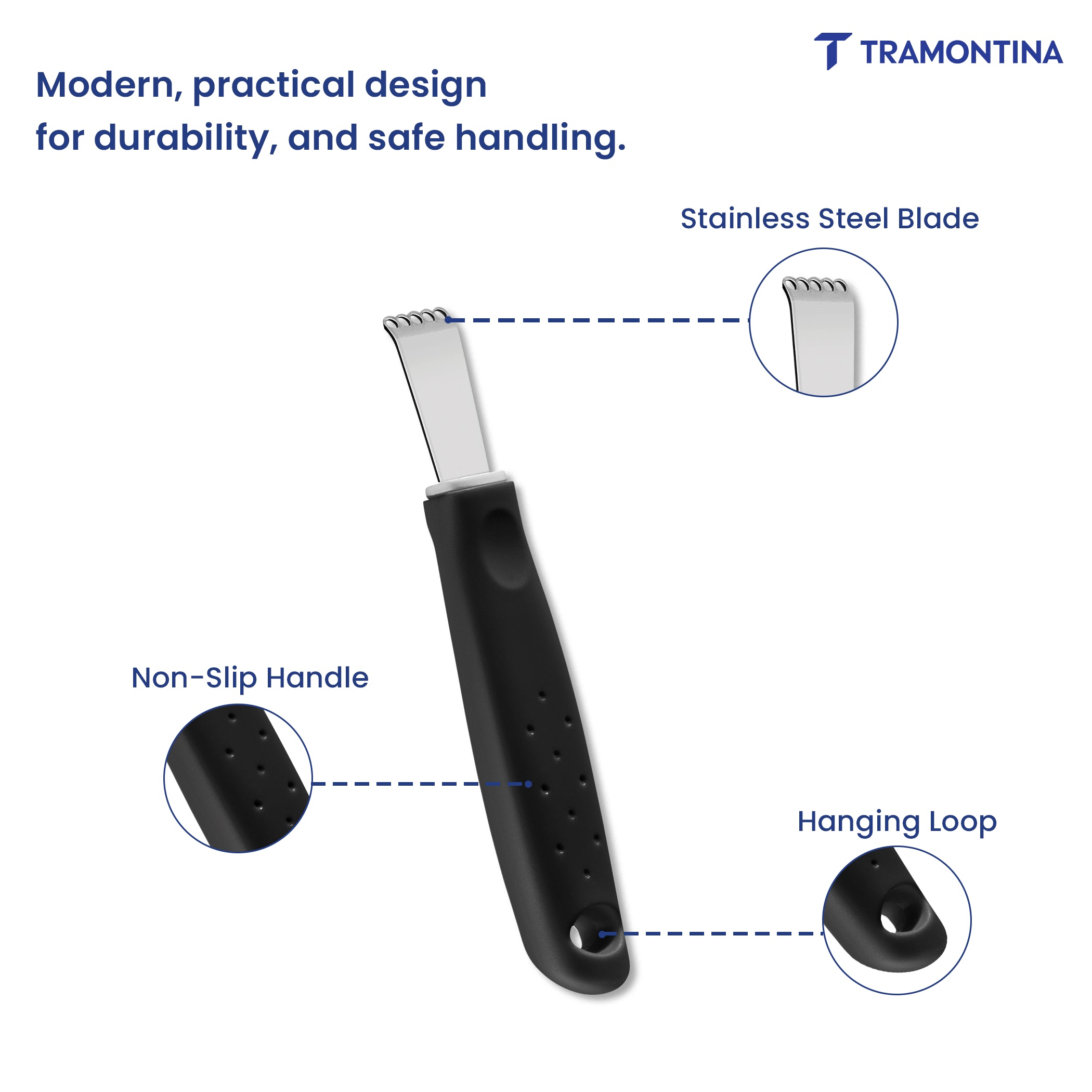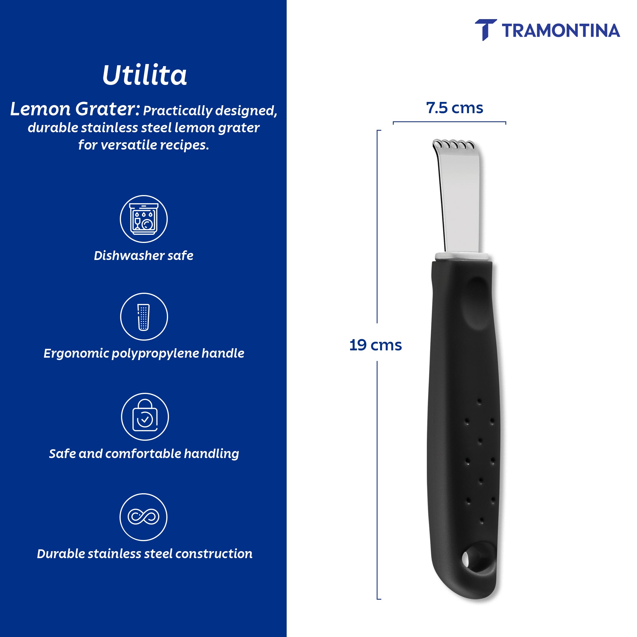 With the Tramontina Utilità stainless steel lemon zest with black polypropylene handle, you can add the perfect touch to your recipes with great practicality, ensuring that your sweets are super tasty. The Utilità line brings essential utensils to every kitchen for you to create incredible dishes worthy of a true chef. In addition, its modern and distinctive design allows for color and modernity to the space. The zest is made with a stainless steel blade, ensuring its durability and maintaining its original characteristics for longer. The polypropylene handle makes handling more comfortable and safe. And to finish the recipe, just add a pinch of love.